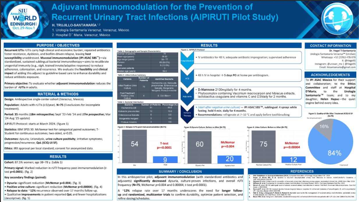 5. ePosterAdjuvant Immunomodulation for the Prevention of Recurrent Urinary Tract Infections. (Aipiruti Pilot Study)October 29, 2025 |