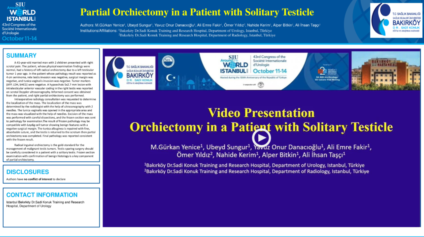 2. ePosterVideo Presentation of Partial Orchiectomy in a Patient with Solitary TesticleOctober 11, 2023 Ubeyd Sungur |