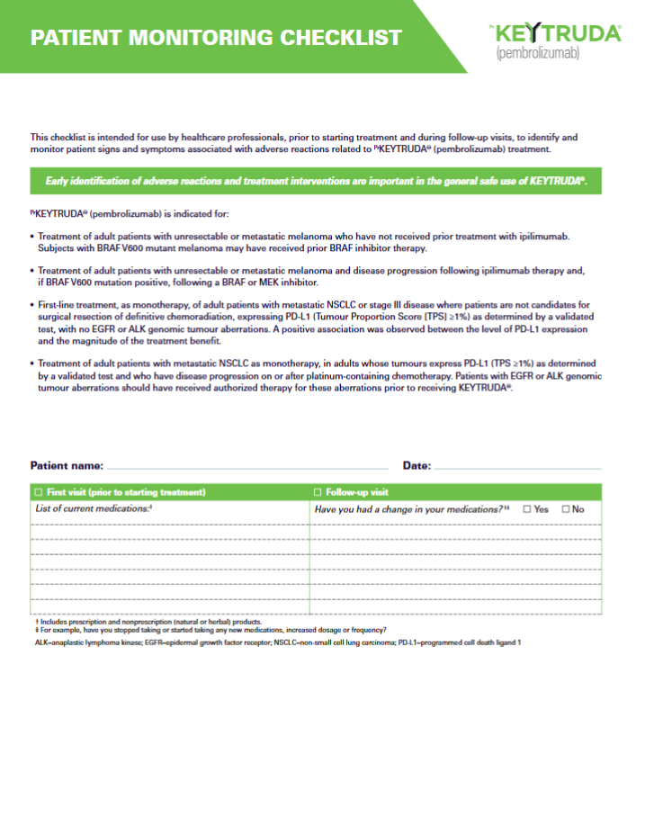 3. PDF DocumentKEYTRUDA® - Patient monitoring checklistNovember 7, 2020 Prepared by: Merck Sharp & Dohme Corp